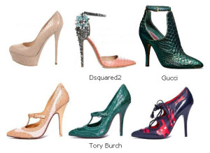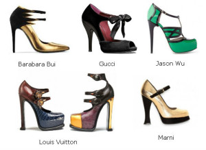 Οι περισσότεροι σχεδιαστές επέλεξαν να δώσουν έμφαση στο ύψος του τακουνιού με “metal patched heel” (ψηλό μεταλλικό τακούνι) που φέτος είχε την τιμητική του στις πασαρέλες. Πολλοί όμως ήταν και αυτοί, που έδωσαν άλλο χαρακτήρα στα τακούνια προσθέτοντας διάφορα διακοσμητικά στοιχεία από δαντέλα, τρουκ, κρύσταλλα και άλλα διακοσμητικά.