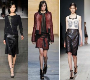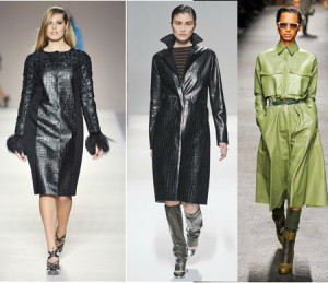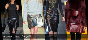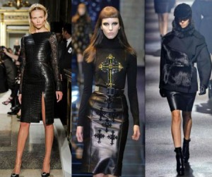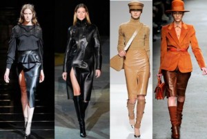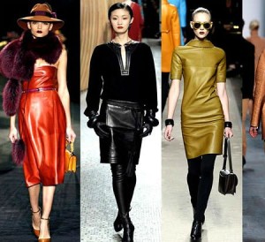 Δερμάτινες φούστες και φουστάνια επανέρχονται πολύ δυναμικά στις πασαρέλες μόδας Φθινόπωρο-Χειμώνας 2012-2013. Και σε αυτή την περίπτωση το πιο δημοφιλές χρώμα στις πασαρέλες είναι το μαύρο. Όμως, τα χρώματα της ελιάς, τα nude για το φθινόπωρο και το μπορντό θα φορεθούν εξίσου πολύ.
