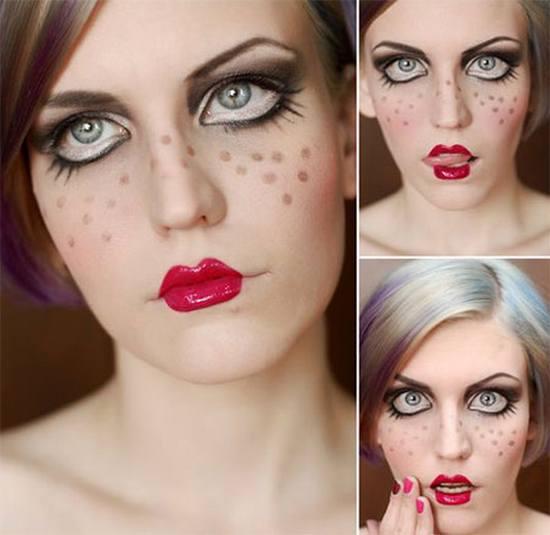 Αν αγαπάτε το μακιγιάζ για τις απόκριες και προτιμάτε τις diy στολές, τότε σας προτείνω ένα όμορφο και γλυκό μακιγιάζ κούκλα. Με τα πινέλα σας και τα κατάλληλα προιόντα μακιγιάζ, δημιουργήστε τα χαρακτηριστικά μιας κούκλας, όπως τα έντονα και εντυπωσιακά μάτια της, τα ροδαλά της μαγουλάκια, τις ζωγραφιστές βλεφαρίδες και τα pinky καλοσχηματισμένα χείλη της.