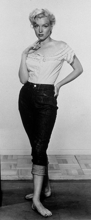 Τα παντελόνια της ήταν ψηλόμεσα και στο ύψος του αστράγαλου, τα οποία συνδύαζε συνήθως με κοντά μπλουζάκια αλλά και πουκάμισα φορεμένα από μέσα, ακριβώς για να τονιστεί και πάλι η μέση της.