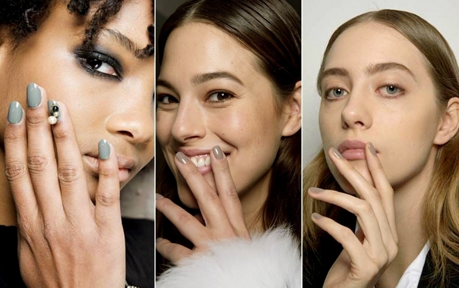 Το taupe και γκρι χρώμα στα νύχια δείχνει αριστοκρατικό, σοβαρό και απλό. Αν και οι γκρι τόνοι δείχνουν λίγο μονότονοι, φέτος το χειμώνα τους βλέπουμε κυρίως σε κοντά νύχια ως μια εναλλακτική πρόταση των nude χρωμάτων. Αρκετοί σχεδιαστές επέλεξαν αυτά τα χρώματα εκ των οποίων και ο Michael Kors, που προτίμησε αυτό το χρώμα σε αμυγδαλωτά νύχια, ενώ η Jill Stuart σε στρογγυλά.