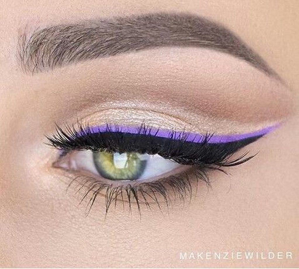 Δύο γραμμές eyeliner σε διαφορετικό χρώμα που χαρίζουν ένα ανατρεπτικό αποτέλεσμα και μία εντυπωσιακή εμφάνιση στο βλέμμα. Παίξε με τους συνδυασμούς των αποχρώσεων και το πάχος της γραμμής.