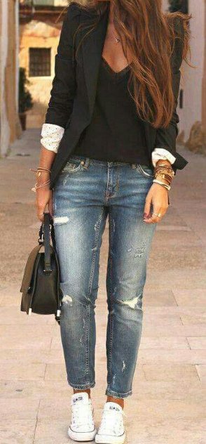 Το πιο απλό αλλά παράλληλα chic καθημερινό ντύσιμο περιλαμβάνει τα αγαπημένο σου jeans και ένα μαύρο σακάκι! Μπορείς να το φορέσεις από το γραφείο μέχρι το απογευματινό γεύμα.