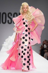Ο Moschino έδωσε σάρκα και οστά, όχι μόνο στις κούκλες αλλά και στα ρούχα, παπούτσια, αξεσουάρ. Τώρα έχουμε πραγματικά την ευκαιρία να φορέσουμε και εμείς τα ρούχα της barbie που ζηλεύαμε μικρές.