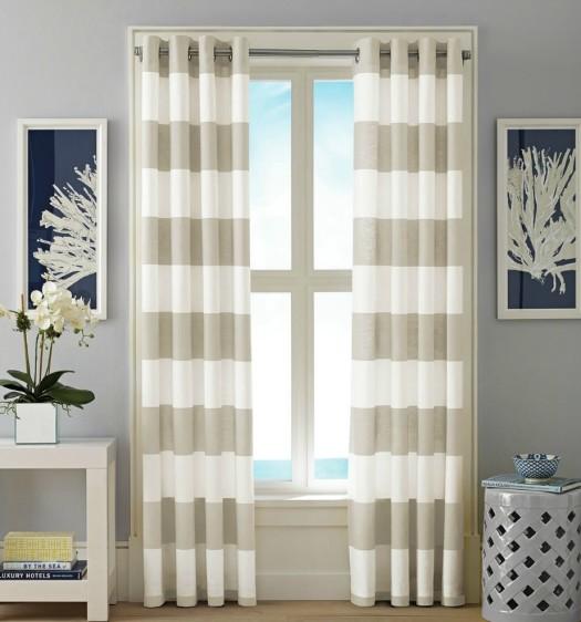 Ριγέ κουρτίνες Οι ριγέ κουρτίνες είναι ένα από τα πιο δυνατά trends της σεζόν και τα σχέδια που υπάρχουν στην αγορά είναι αμέτρητα. Μπορείτε να επιλέξετε κουρτίνες με κατακόρυφες ή οριζόντιες ρίγες αλλά και κουρτίνες με ρίγες σε συγκεκριμένα σημεία της επιφάνειάς τους.