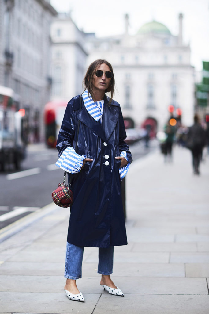 Το απόλυτο φθινοπωρινό look περιλαμβάνει ένα trenchcoat, τζιν σε ίσια γραμμή, μυτερά mules και φυσικά μια cross-body bag