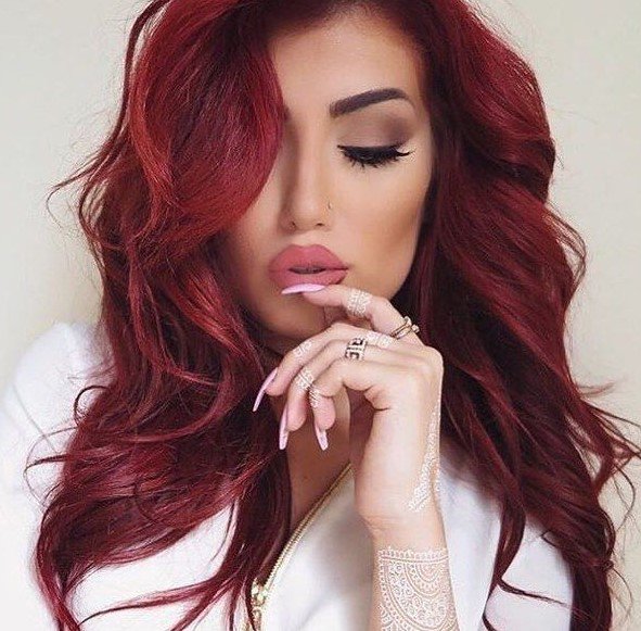 Τα κόκκινα χείλη σε μια γυναίκα με πορφυρά μαλλιά, είναι ένας απίστευτα sέξι συνδυασμός που τους σαγηνεύει όλους. Απόφυγε τα πορτοκαλί και προσπάθησε να εμμένεις σε κόκκινες και μπορντό αποχρώσεις που σου ταιριάζουν πολύ.