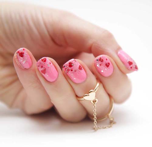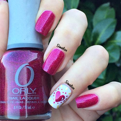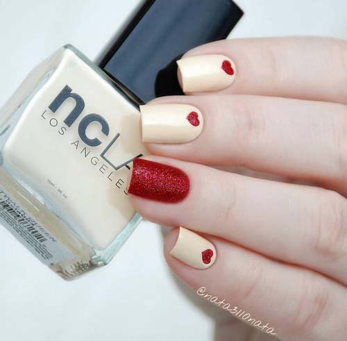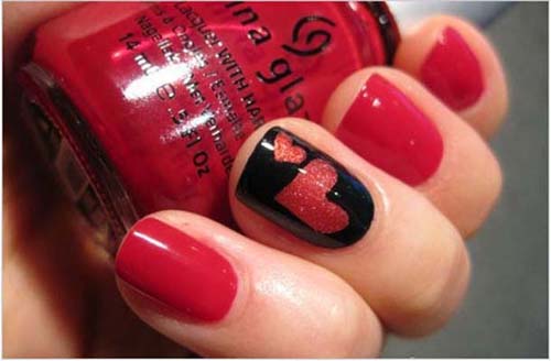 Τέλος, αν δεν σας αρέσουν τα παιχνιδιάρικα μανικιούρ, μπορείτε απλά να επιλέξετε ένα υπέροχο σχέδιο με κόκκινα νύχια. Εξάλλου, αυτό είναι το χαρακτηριστικό χρώμα για την γιορτή των ερωτευμένων.