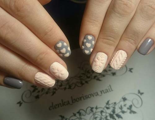 Ένας ακόμη ενδιαφέρον τρόπος για να δημιουργήσετε ένα εντυπωσιακό και πρωτότυπο μανικιούρ είναι να παίξετε με τις υφές. Κάντε τα νύχια σας γυαλιστερά και λαμπερά, ματ, βελούδινα, ανάγλυφα ή με glitter και φτιάξτε ξεχωριστά μανικιούρ για τις 14 Φλεβάρη.
