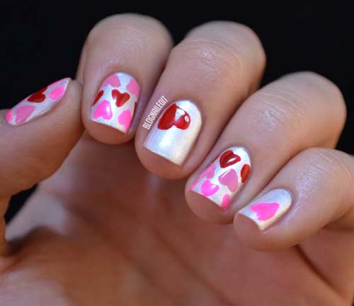 Επιλέξτε νύχια στα χρώματα του έρωτα, όπως το κόκκινο, το ροζ και το άσπρο, χωρίς ωστόσο να αποκλείονται και βερνίκια νυχιών σε άλλες αποχρώσεις. Το μαύρο, το γκρι, το μωβ και πολλά ακόμη χρώματα μπορούν να δημιουργήσουν εξίσου εντυπωσιακά ρομαντικά μανικιούρ για την γιορτή του Αγίου Βαλεντίνου. Εφαρμόστε τα ως βάση ή συνδυάστε τα με κόκκινο, ροζ και λευκό, κάνοντας εντυπωσιακά σχέδια στα νύχια σας. Παίξτε με τις ζωγραφιές και βάλτε την φαντασία σας να δημιουργήσει υπέροχα μανικιούρ για μια ερωτευμένη γυναίκα.
