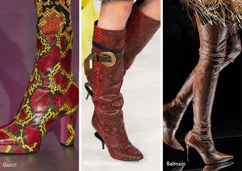 Ας μιλήσουμε για μπότες! Όπως θα διαπιστώσετε και παρακάτω, μπότες σε διαφορετικά μήκη, στυλ και υφάσματα κατέκλυσαν τις πασαρέλες στην εβδομάδα μόδας. Οι μπότες 2018 από δέρμα φιδιού θεωρούνται η κυριότερη τάση στα παπούτσια χειμώνα 2017-2018.