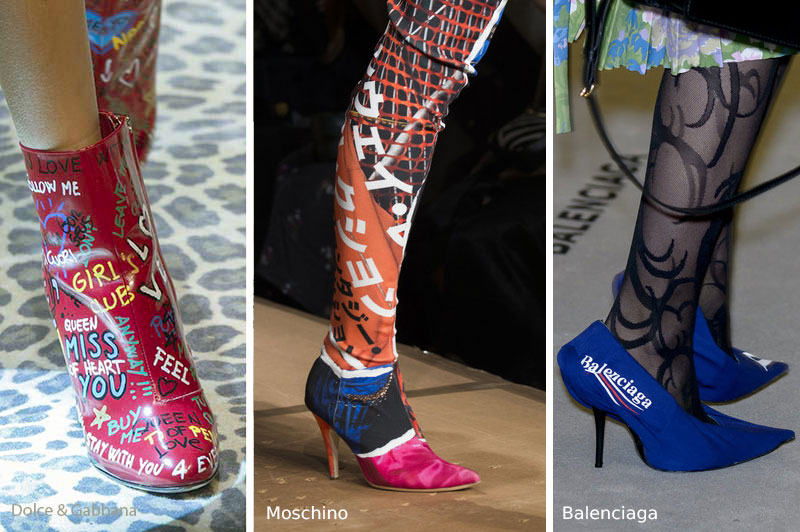 Περιμέναμε αυτήν την τάση καιρό τώρα και να που ήρθε. Παπούτσια με αποτυπωμένα λογότυπα, γκράφιτι, σλόγκαν και τα brand names των σχεδιαστών εμφανίστηκαν στα catwalks. Balenciaga, Moschino, Dolce & Gabbana, παρουσίασαν μερικά από τα πιο εντυπωσιακά σχέδια παπουτσιών για το φθινόπωρο χειμώνα 2018 και εισέπραξαν τις καλύτερες κριτικές.