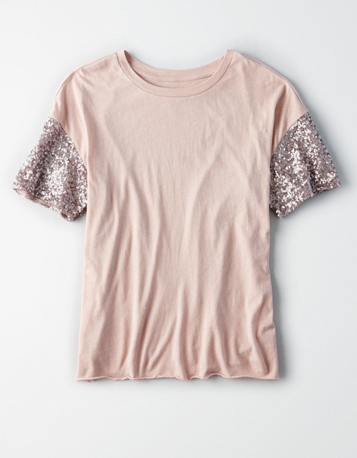 T-shirt στο χρώμα της πούδρας, Αmerican Eagle Outfitters