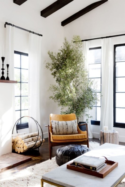Ένας συνδυασμός που ποτέ δεν μπορεί να είναι λάθος είναι οι λευκές λινές κουρτίνες σε μαύρο κουρτινόξυλο.