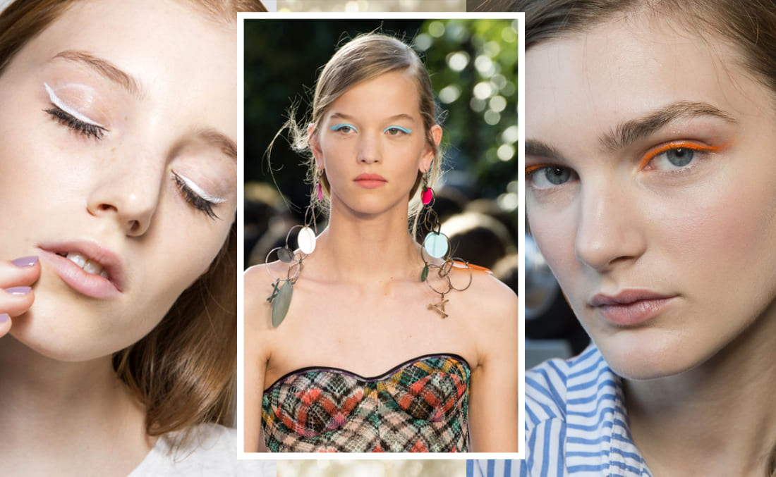 Το eyeliner είδαμε να χρησιμοποιείται σε ποικιλία χρωμάτων για να δώσει φως και ένταση στο μακιγιάζ.. Το λευκό eyeliner, το μπλε, πορτοκαλί, κίτρινο κλπ, είναι μερικές από τις τάσεις του μακιγιάζ 2018 άνοιξη καλοκαίρι, που συναντήσαμε στα catwalks.