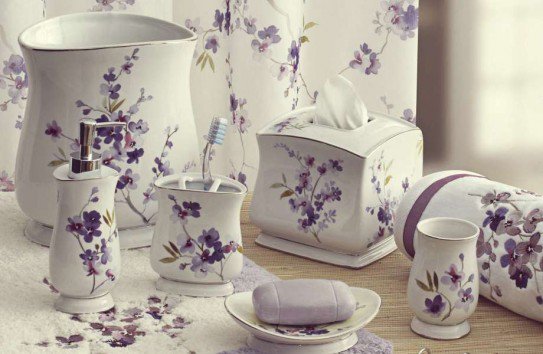 Ζωντανέψτε το μπάνιο σας συνδυάζοντας το taupe με μοβ διακοσμητικά.