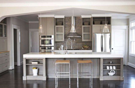 Γκρι ανοιχτό Μπορεί το γκρι να έχει… πενήντα αποχρώσεις (τουλάχιστον), αλλά το ανοιχτό γκρι προσφέρει την ευκολία και την κομψότητα του λευκού χωρίς να λερώνει εξίσου εύκολα. Προτιμήστε το συγκεκριμένο χρώμα αν οι πάγκοι και τα ντουλάπια της κουζίνας σας διαθέτουν πέτρινες ή χρωματιστές λεπτομέρειες καθώς θα τις αναδείξει ακόμα περισσότερο.