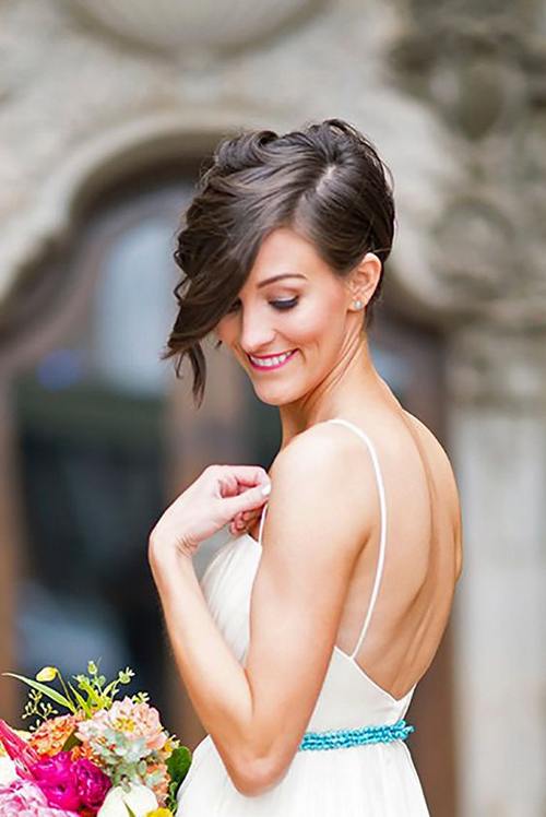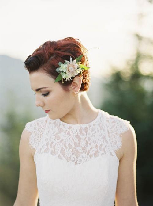 Δείτε πως ένα πολύ κοντό κούρεμα μπορεί να δείξει πανέμορφο την ημέρα του γάμου σας. Γενικώς υπάρχει η νοοτροπία ότι οι νύφες όσο πιο μακριά μαλλιά έχουν τόσο το καλύτερο για να υπάρχει επιλογή χτενίσματος.
