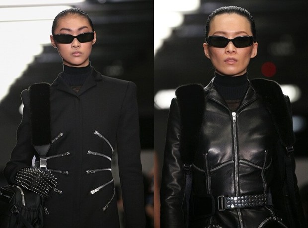 Η Trinity, ο χαρακτήρας της διάσημης ταινίας “Matrix”, γίνεται σύμβολο του στυλ. Οι σχεδιαστές εμπνευσμένοι από τη θρυλική της εικόνα, έντυσαν τα μοντέλα με αδιάβροχο μαύρο βινύλιο και κάλυψαν τα μάτια κάτω από τα στενά ορθογώνια γυαλιά ηλίου. Μπορείτε να τα συνδυάσετε με γιλέκα, κουκούλες, ογκώδη σκουλαρίκια και μπερέδες.