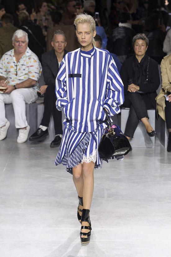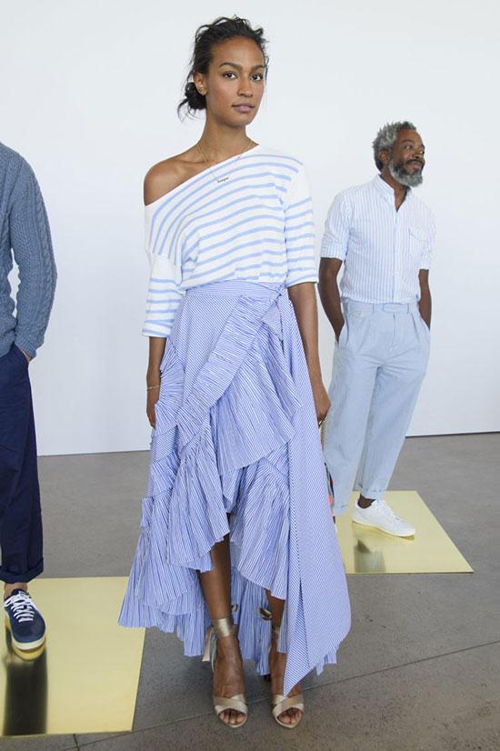 Δίχρωμες κάθετες ρίγες σε μπλουζάκια ή πουκάμισα, με παραδοσιακά κουμπιά ή με λευκό γιακά ως fashion statement και έντονα ruffles. Οι Οff shoulder, χυτές, ριγέ μπλούζες, μπορεί να συνδυαστούν super με τα skinny jeans ή τα παντελόνια με χρώμα.