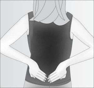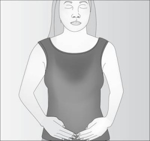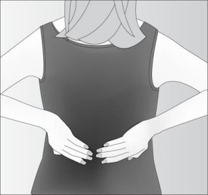 Τοποθέτησε τα χέρια στο στο στομάχι στο σημείο του αφαλού.