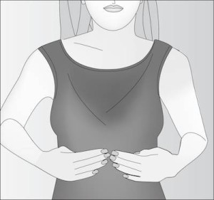 Τοποθέτησε τα χέρια πάνω από το στήθος με τα δάχτυλα να κοιτούν προς τα μέσα και να ενώνονται.