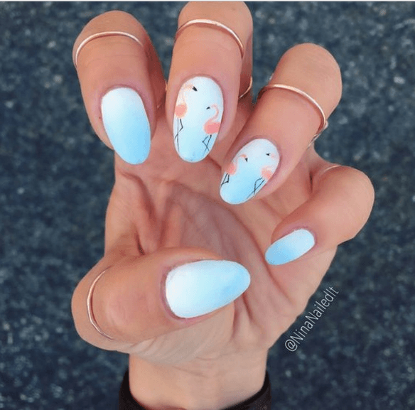 Κι όπως καταλαβαίνεις, ο beauty κόσμος δεν θα μπορούσε να μείνει ασυγκίνητος μπροστά σε όλη αυτή τη φρενίτιδα, η οποία ξεκίνησε το καλοκαίρι του 2015 όταν αρκετές διάσημες κυρίες άρχισαν να φωτογραφίζονται με τα φουσκωτά ροζ πτηνά στις πισίνες τους (Diane Kruger, Taylor Swift Kendall Jenner ήταν μόνο μερικές από αυτές που έκαναν την αρχή). Έτσι, τα #flamingonails (aka μανικιούρ με φλαμίνγκο) έρχονται να γίνουν ένα από τα αγαπημένα σχέδια στο καλοκαιρινό μανικιούρ εκατομμυρίων γυναικών και γιατί όχι, και του δικού μας.