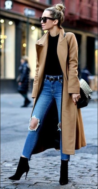 Το παλτό σου σε ταμπά απόχρωση μπορεί να συνδυαστεί υπέροχα με σκούρα χρώματα και να φορέσεις ένα μαύρο μπλουζάκι ή ακόμα και να δημιουργήσεις ένα total black outfit που θα φωτίσεις με αυτό το παλτό.