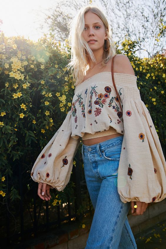 Σε ένα κεντητό τοπ, τέλειο για τα φεστιβάλ του καλοκαιριού!