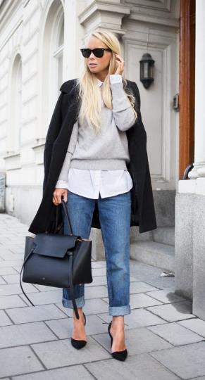 Θες να είσαι κομψή στο γραφείο, αλλά παράλληλα το κρύο είναι τσουχτερό και προβληματίζεσαι; Διάλεξε ένα loose τζιν, φόρεσε ένα λευκό μακρύ πουκάμισο και από πάνω το γκρι πουλόβερ. Βάλε τις γόβες και το παλτό σου και είσαι έτοιμη. Ακόμα μπορείς να το συνδυάσεις με ένα στενό τζιν και να διαλέξεις το φαρδύ σου πουλόβερ με το φαρδύ γιακά. Ολοκλήρωσε το στυλ με τα ζεστά χειμωνιάτικα μποτάκια σου.
