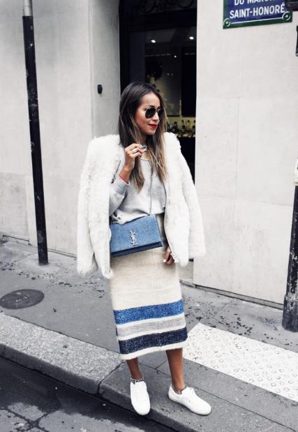 Για casual εμφανίσεις διάλεξε μια άνετη μίνι ή μίντι φούστα με έντονα χρώματα, σχέδια ή ακόμα και denim και φόρα απλά το άνετο φαρδύ πουλόβερ σου. Ολοκλήρωσε το outfit με τα sneakers που δεν θα σταματήσουμε να λέμε πως είναι το απόλυτο trend του φετινού χειμώνα και θα έχεις ένα άψογο street look.