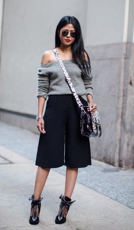 Αν θες να κάνεις την εμφάνιση σου πιο ιδιαίτερη μπορείς να φορέσεις μια πιο κλασσική φούστα, ίσια ή με πιέτες και φυσικά τις over-the-knee μπότες ή κλασσικές μαύρες γόβες. Εναλλακτικά διάλεξε μια ζιπ-κιλότ που είναι επίσης η τελευταία λέξη της μόδας και για κάποιες από εμάς είναι πολύ πιο άνετη απ’ ότι οι φούστες.